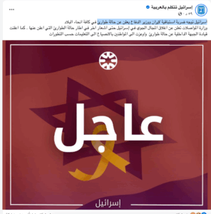وزير الدفاع الإسرائيلي يعلن حالة الطوارئ ويأمر برفع الجاهزية العسكرية